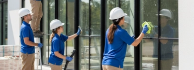 We handle post-construction window cleaning, removing paint splatters, dust, and debris for a flawless finish.